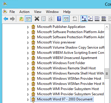- Underneath DCOM Config, right-click Microsoft Word 97 - 2003 Document and select Properties.