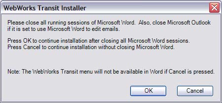 If you have any Microsoft Office processes running when installing ePublisher, including instances of Microsoft Word and Microsoft Outlook, ePublisher displays the following error message.