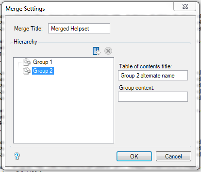 For example, if you have two or more groups, the Merge Title will reflect the title bar of the meged helpset and the top-level group.